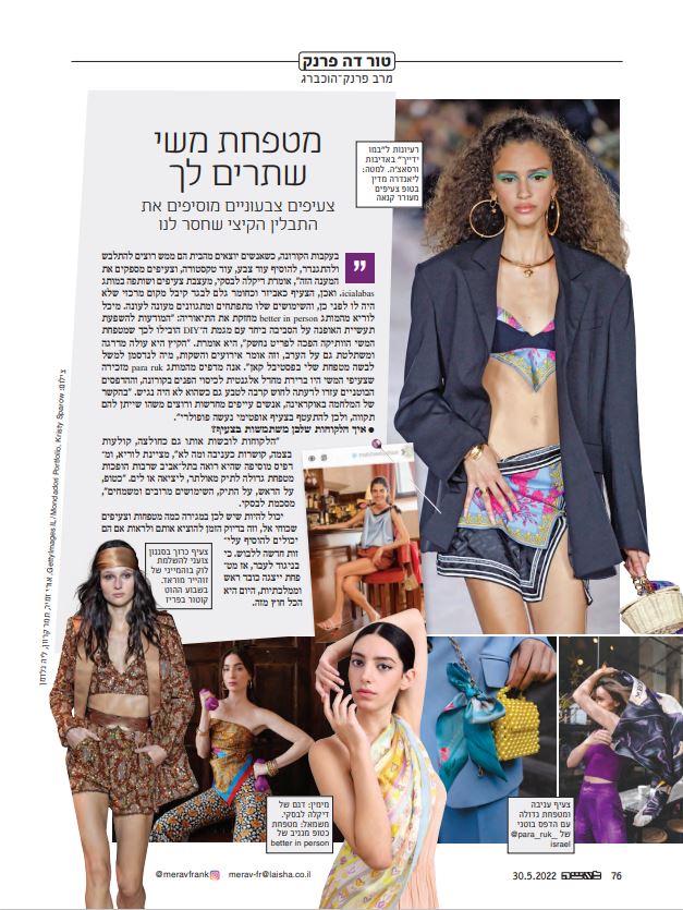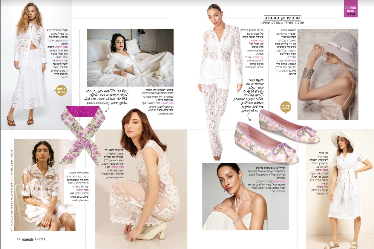 Publications with brand’s accessories have appeared in such as editorials as Vogue, Forbes, L’officiel, Harper’s Bazaar, Grazia, Israeli magazines: La Isha Magazine, Mako Il, Calcalist, Fashion Forward.