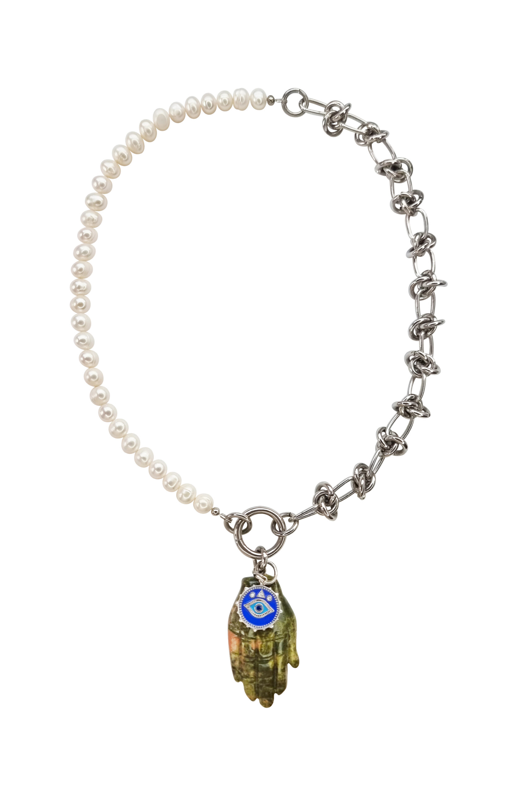 Rhodium plated necklace, an amazing gift for wife on first anniversary, trendy necklace, large chains, Hamsa stone pendant