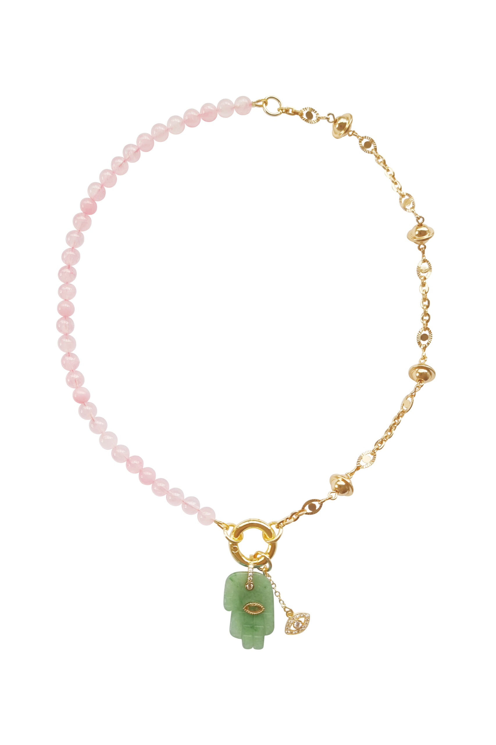 Natural stones necklace – pink quarts, Green Aventurine pendant